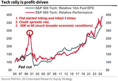 But here is the key difference so far: Earnings growth has largely kept pace with share prices. We haven’t seen the kind of multiple expansion or speculative frenzy typical of historical bubbles. The companies leading this trend are profitable, cash-generative, and integral to the modern economy.